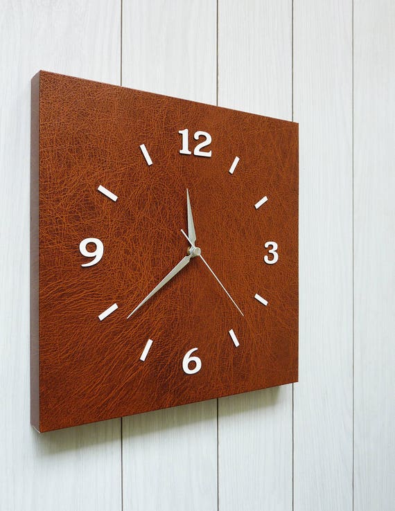 Unique Modern Wall Clock Large Leather Wall Clock Wall Etsy