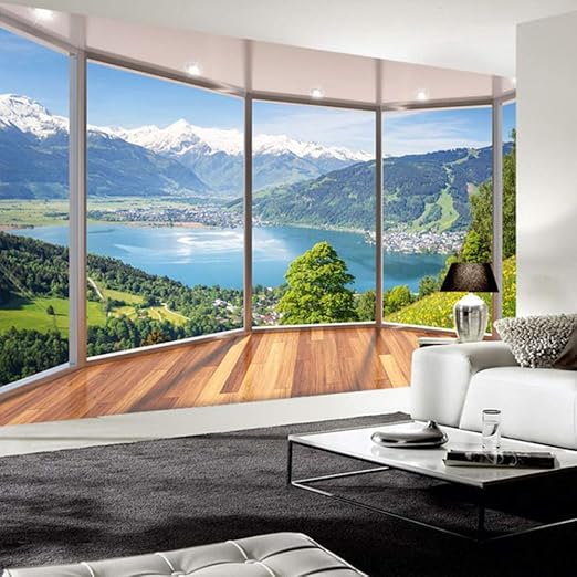 Amazon Com Pbldb Custom Photo Wallpaper 3d Balcony Forest Lake