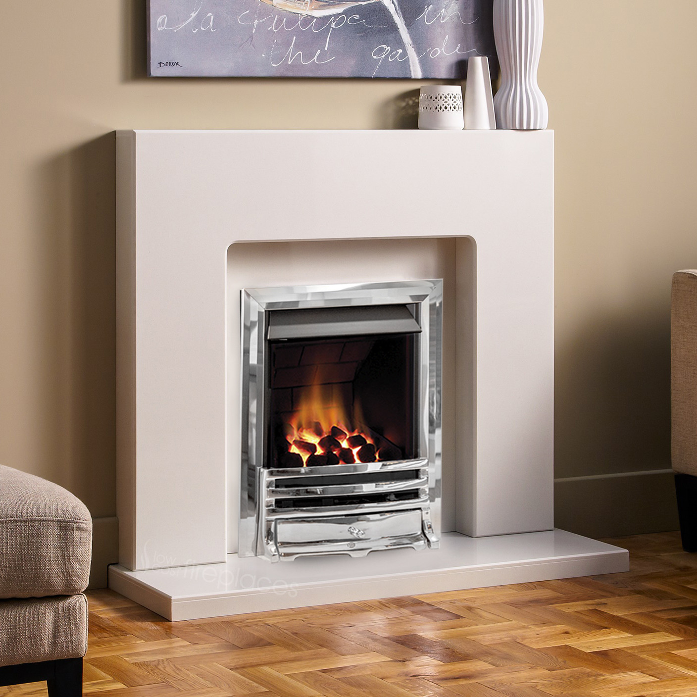 Gas White Marble Stone Modern Wall Solid Surround Chrome Fire