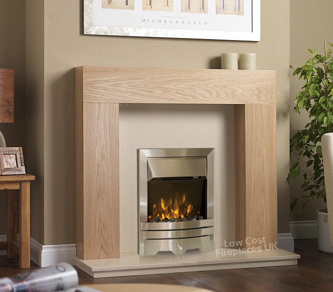 Solid Oak Electric Surround Cream Marble Wall Modern Fire