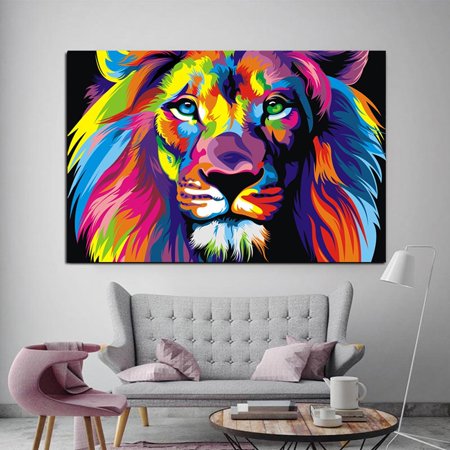 Xinq Modern Home Decoration Colorful Male Lion Wall Art Wild