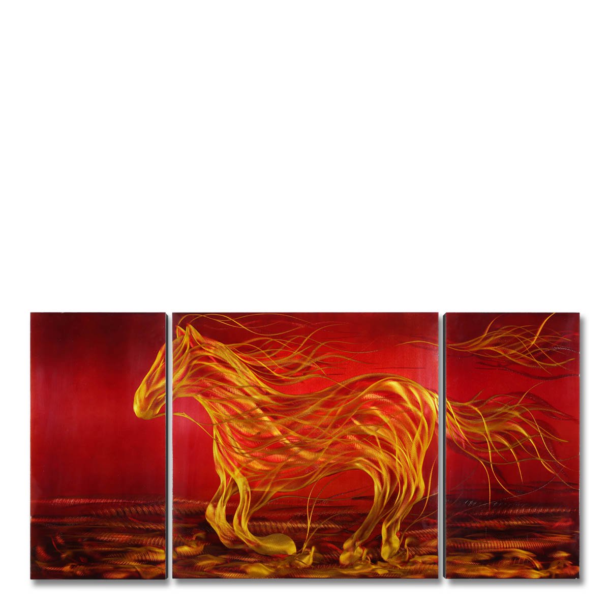 Tooarts Metal Wall Art Modern Artwork Running Horse 3 Panels