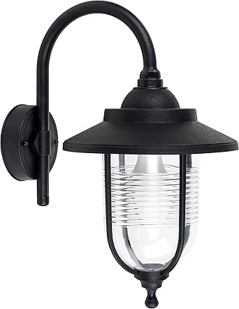 Rustic Design Outdoor Wall Light In Black With Glass Shade Ip44