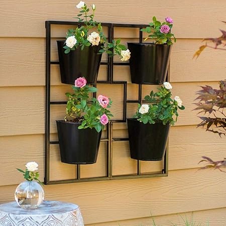 Amazon Com 4 Pc Vertical Hanging Planters Black Metal Wall Faux