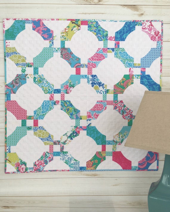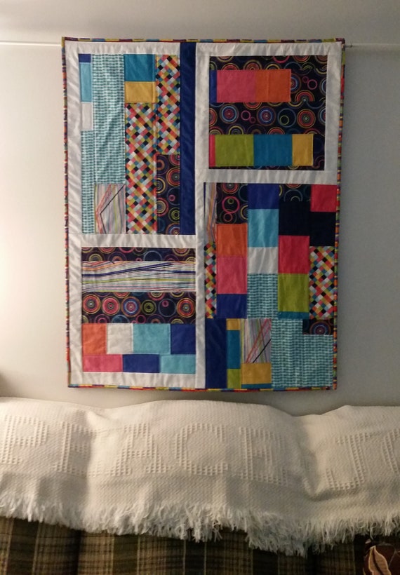 Modern Quilted Wall Hanging Baby Blanket Bright Scrap Quilt Etsy