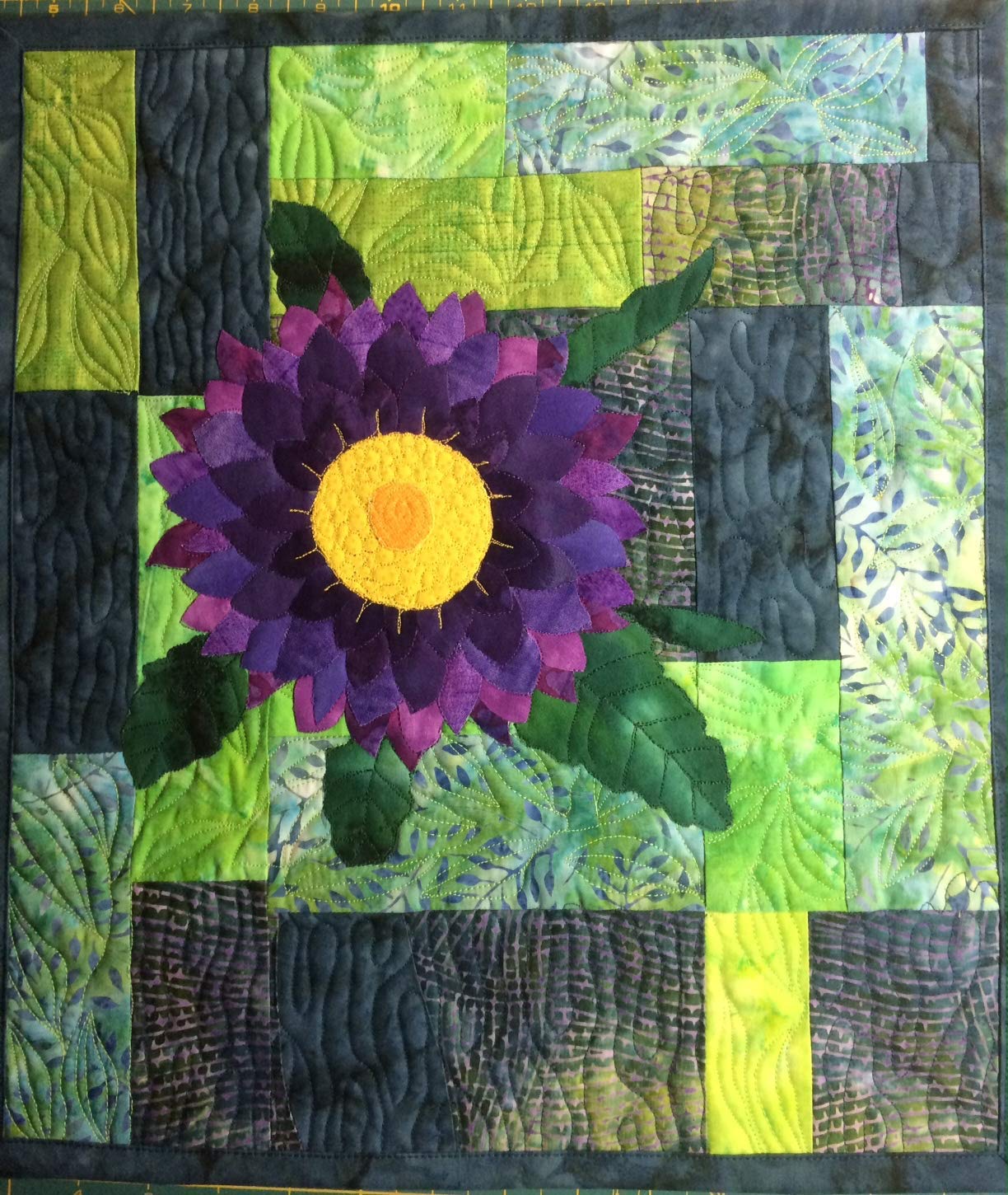 Amazon Com Art Quilt Purple Dahlia Modern Quilted Wall Hanging