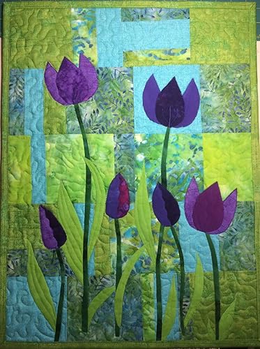 Amazon Com Art Quilt Purple Tulips Modern Quilted Wall Hanging