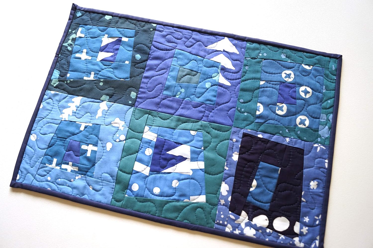 Modern Quilted Wall Hanging Navy Blue Quilt Mini Wall Etsy