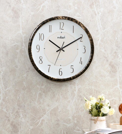 Buy Brown Plastic Round Shape Contemporary Wall Clock By Kaiser