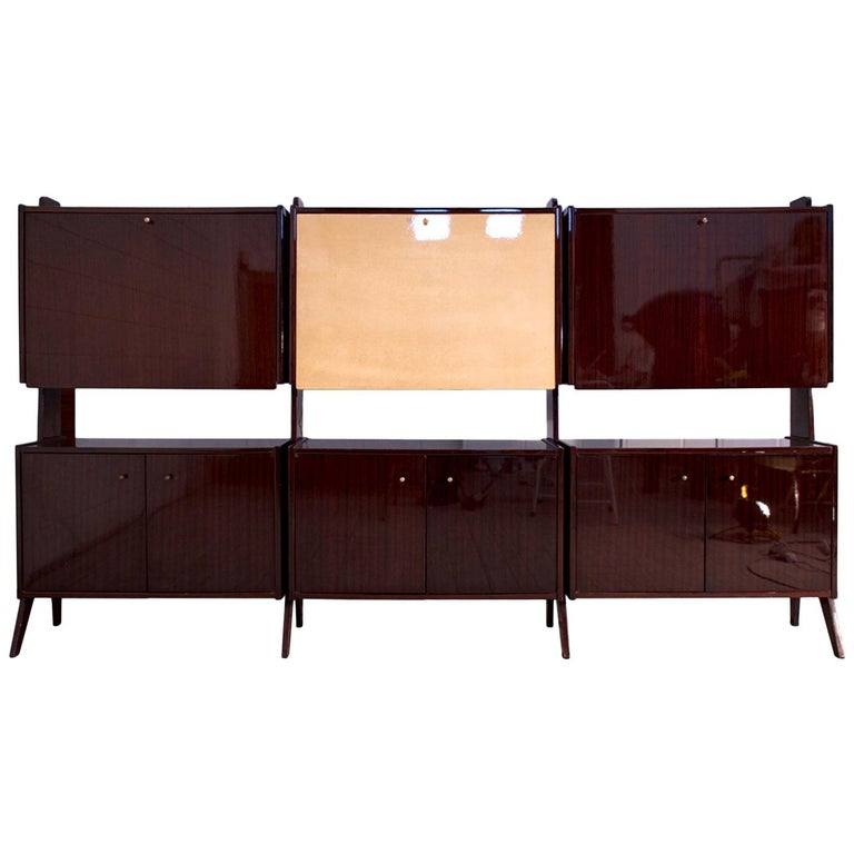 Mid Century Modern Italian Wall Unit Bookcase And Bar Cabinet