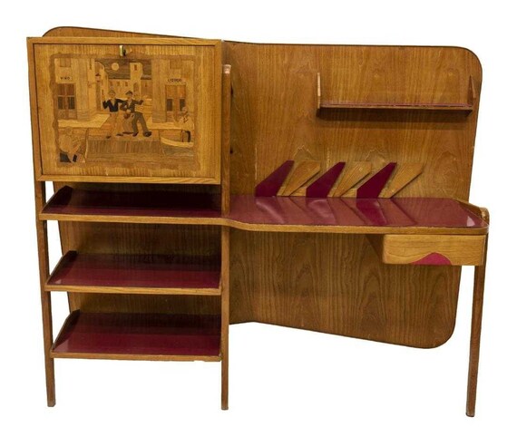 1950s Mid Century Modern Italian Oak Wall Mounted Bar Cabinet Etsy