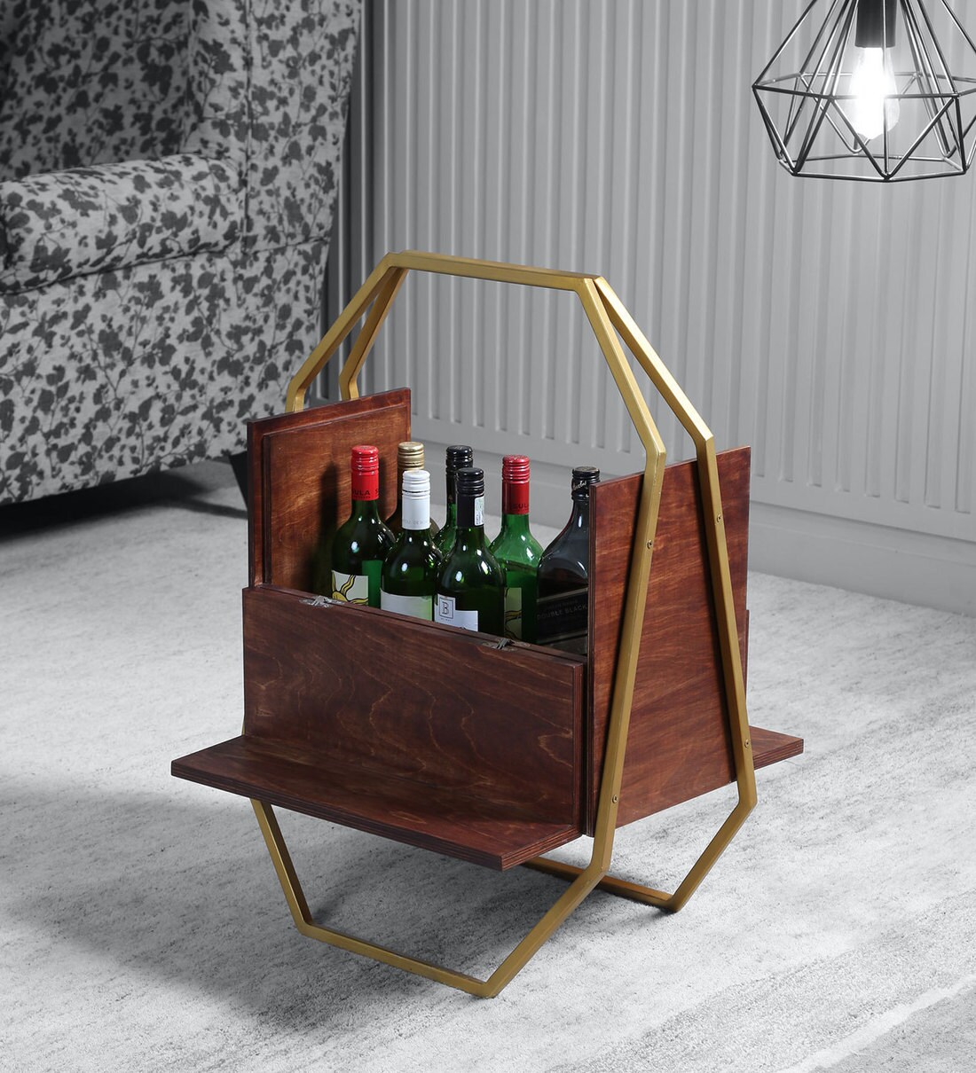 Buy Modern Step Bar Cabinet In Brown Colour By Lycka Online Wine