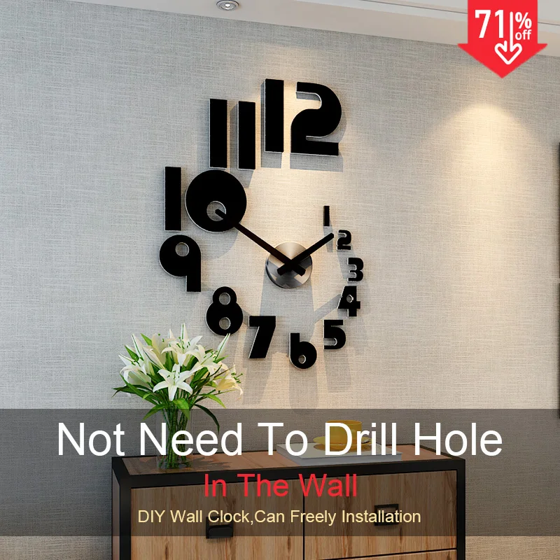 New Art Diy Modern Deco Time Wall Clock Interior Adhesive Home
