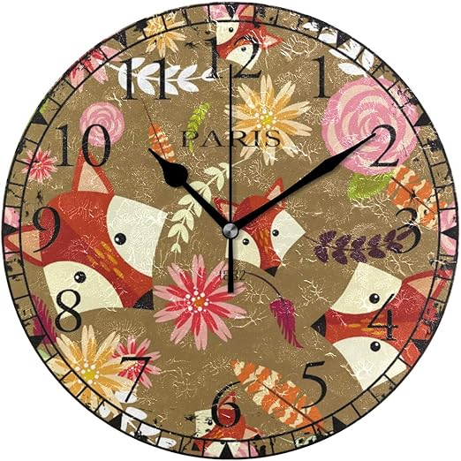 Amazon Com Atzucl Round Modern Wall Clock Fox Head For Kitchen