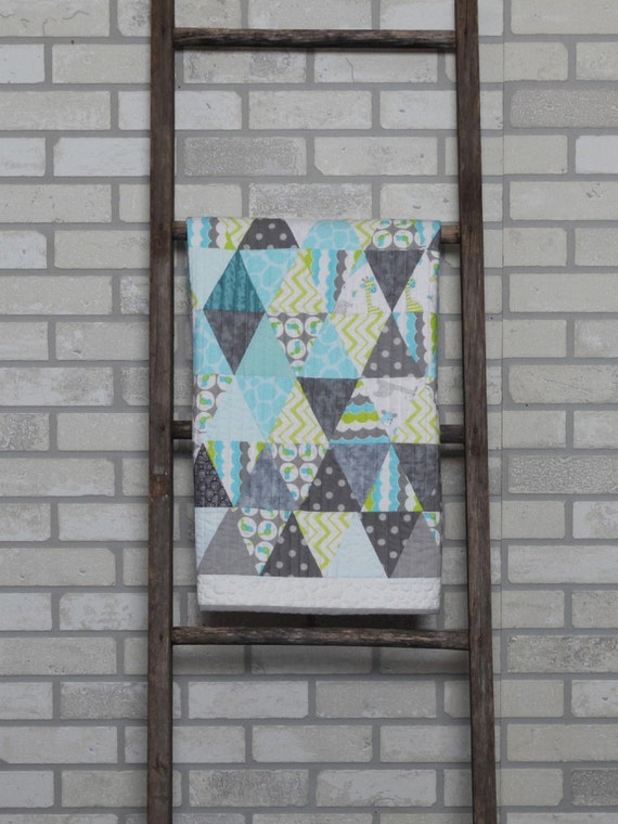 Modern Quilt Wall Hanging Diamond Quilt Teal And Chartreuse