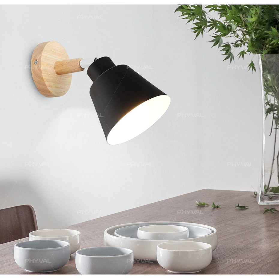 Modern Wood Metal E27 Holder Wall Lamp Bedroom Restaurant Corridor