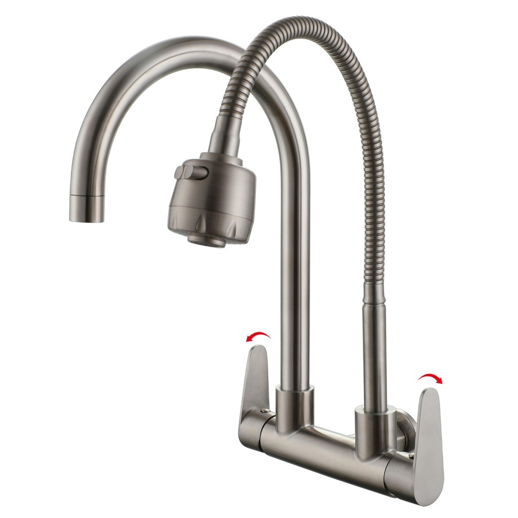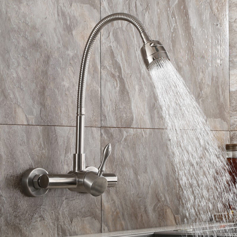 Stainless Steel Kitchen Mixer Tap With Dual Function Sprayer Wall