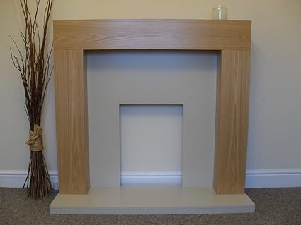 Electric Fire Oak Mantel Surround Ivory Cream Stone Effect Modern