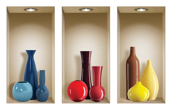Free Shipping Set 3 Colorful Vase Wall Stickers 3d Art Magic Etsy