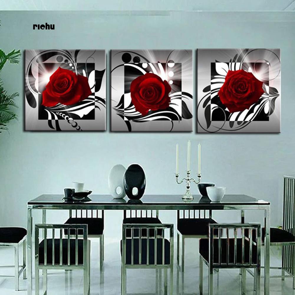 Richu 3pcs Set Red Rose Flower Modern Wall Art Painting Living