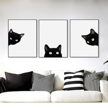 Zajing Unframed 3pcs Set Cute Black Cats Canvas Frameless Painting