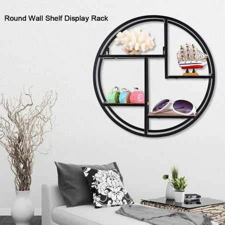 Garosa Industrial Style Wood Iron Craft Round Wall Shelf Display