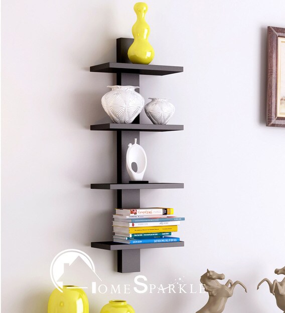Buy Engineered Wood Wall Shelf In Black Colour By Home Sparkle