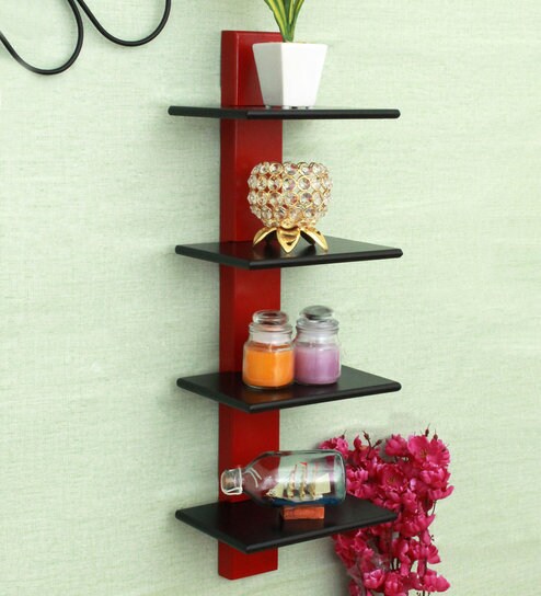 Buy Engineered Wood 4 Tier Floating Wall Shelf In Red Colour By