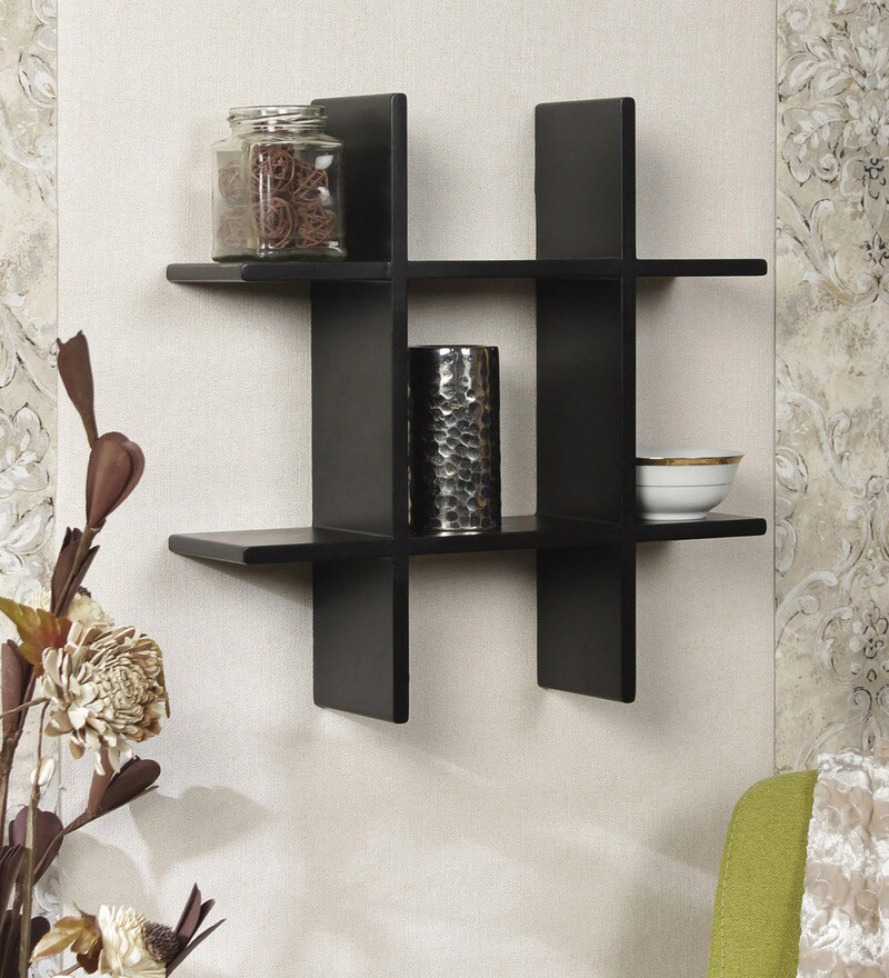 Buy Criss Cross 2 Tier Wall Shelf In Black Finish By Home Sparkle