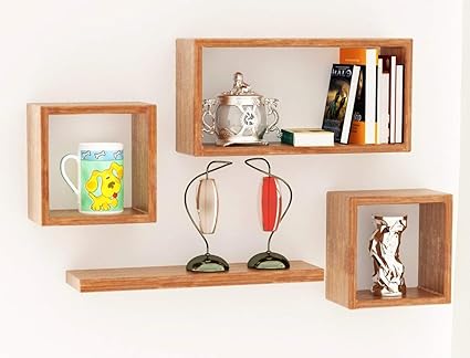 Floating Shelves Wall Shelf Hanging Shelves Wood Set Of 4 As Cube