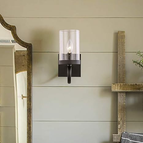 Wall Sconces 1 Light Black Modern Wall Lamp With Seed Glass Shade
