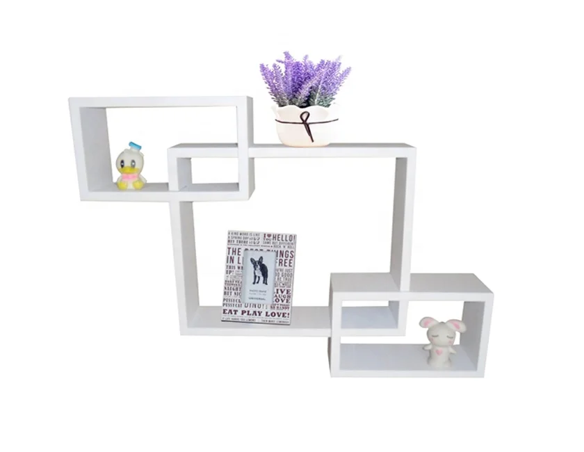 Modern Wooden Cube Wall Shelves Wall Mounted White Decorative