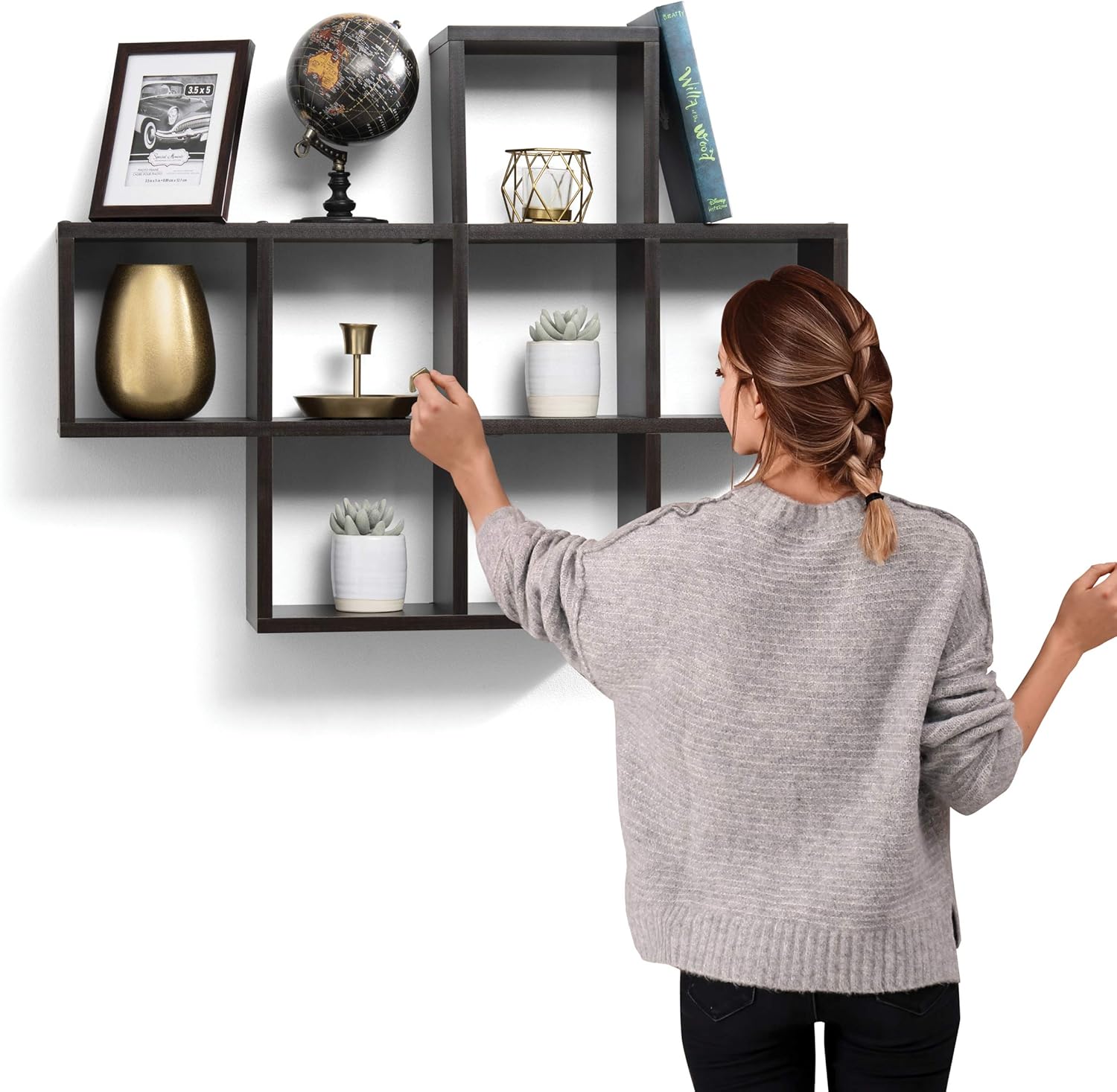 Floating Shelves With 10 Square Cube Wall Shelves Espresso Finish