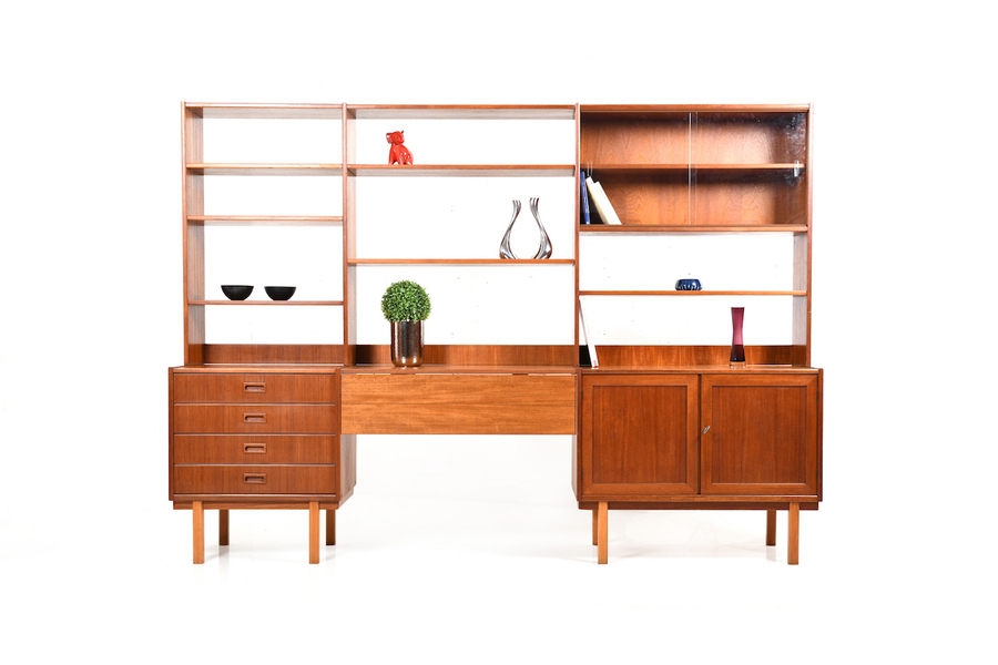 Mid Century Danish Modern Teak Desk Cado Wall Shelving System