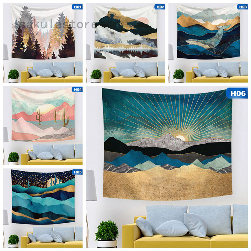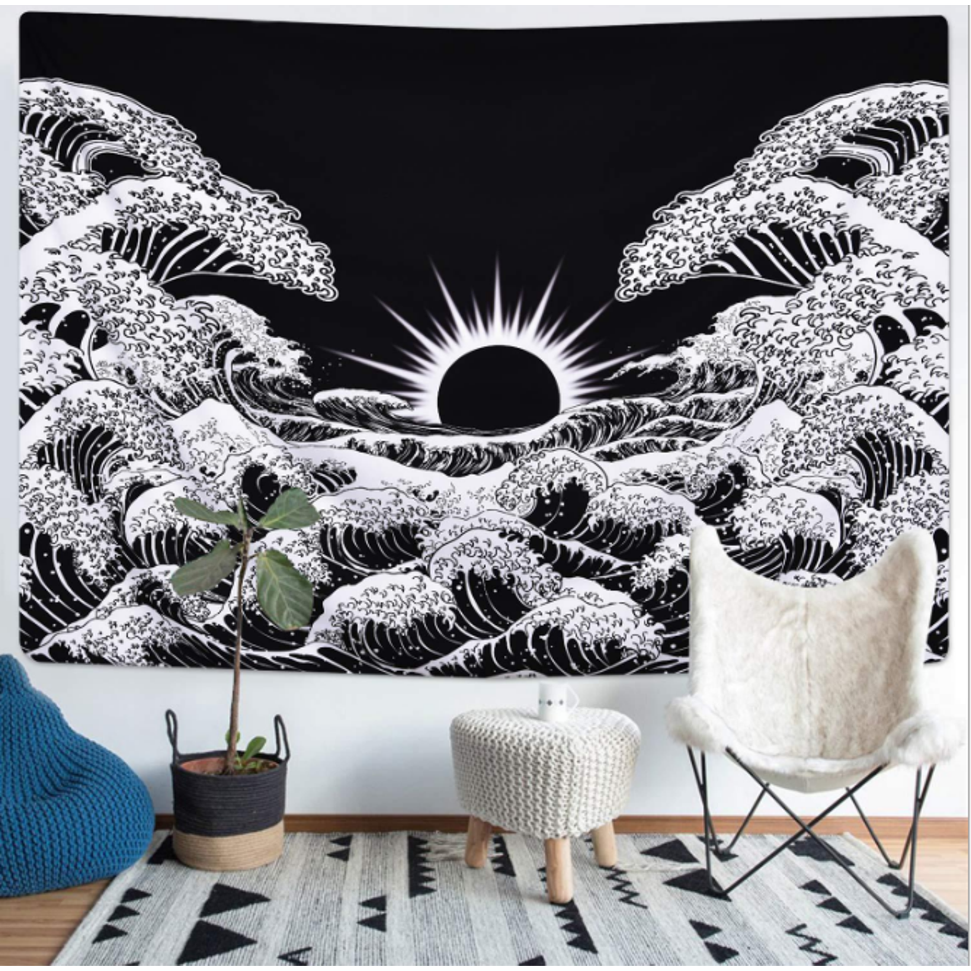 Tapestry Wall Hanging Bedspread Mountain Moon Tsunami Sun Indoor