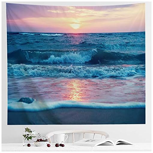 Icosamro Ocean Tapestry Wall Hanging Sea Beach Wave Sun Cloud
