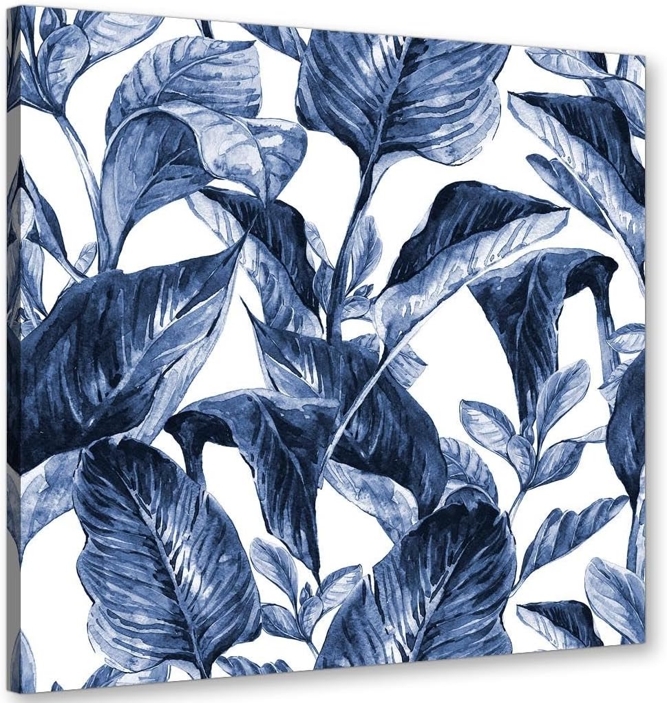 Wallfillers Indigo Navy Blue White Tropical Leaves Canvas Wall Art Modern 49cm Square 1s320s Amazon Co Uk Kitchen Home