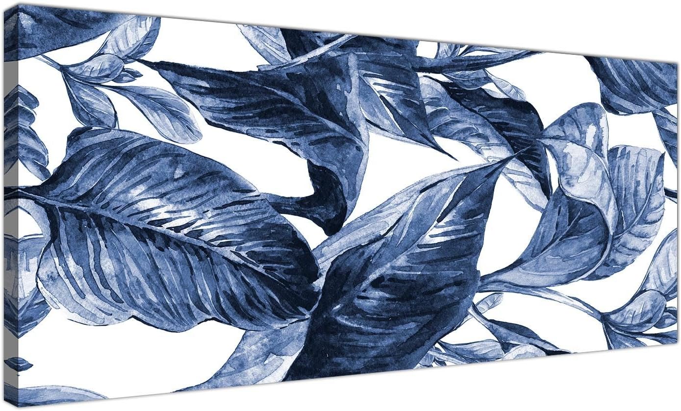Wallfillers Indigo Navy Blue White Tropical Leaves Canvas Wall Art Modern 120cm Wide 1320 Amazon Co Uk Kitchen Home