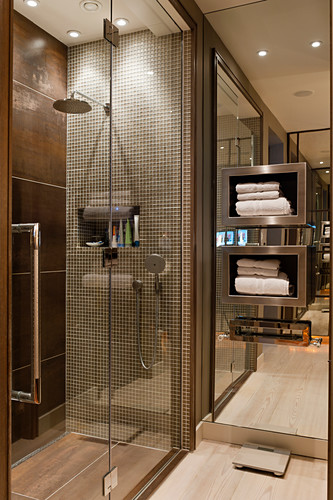 Niche Shelves In Mirrored Wall Next To Buy Image 12597861