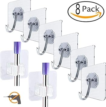 Mokong Clear Adhesive Hooks Sticky Mop Broom Holder Plastic Heavy