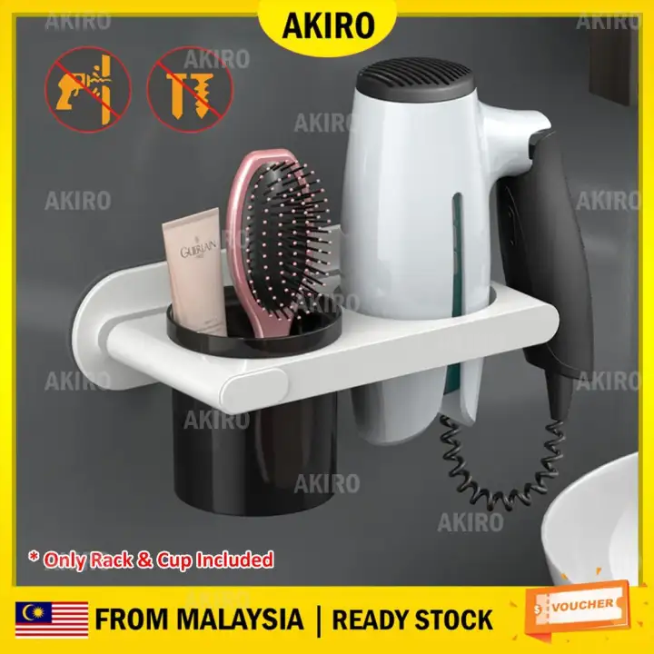 Akiro Malaysia No Drill Hair Dryer Holder Comb Makeup Toothbrush