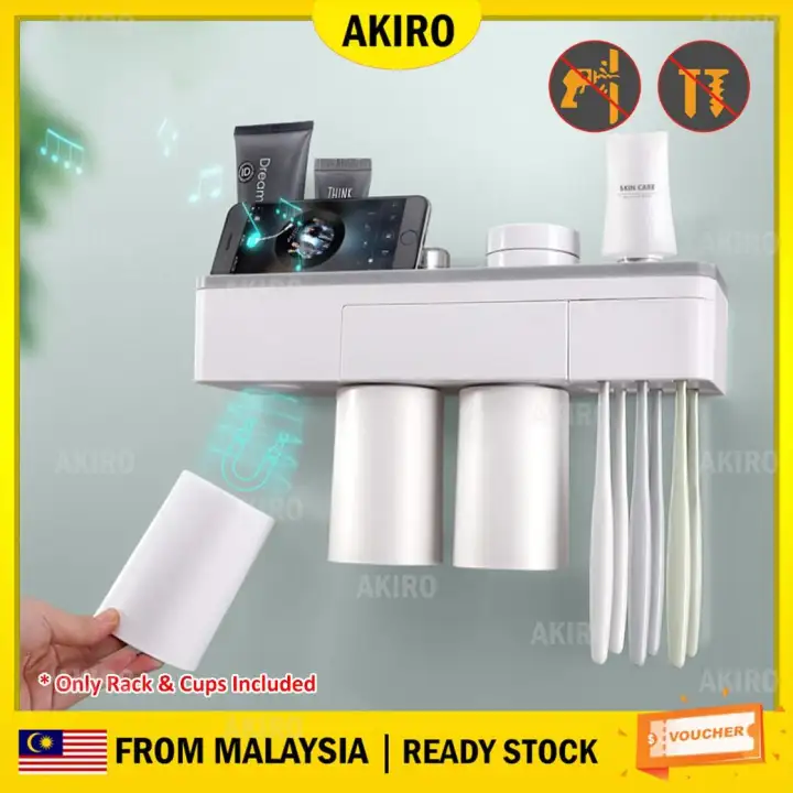 Akiro Malaysia No Drill Multi Purpose Toothbrush Holder Cup With
