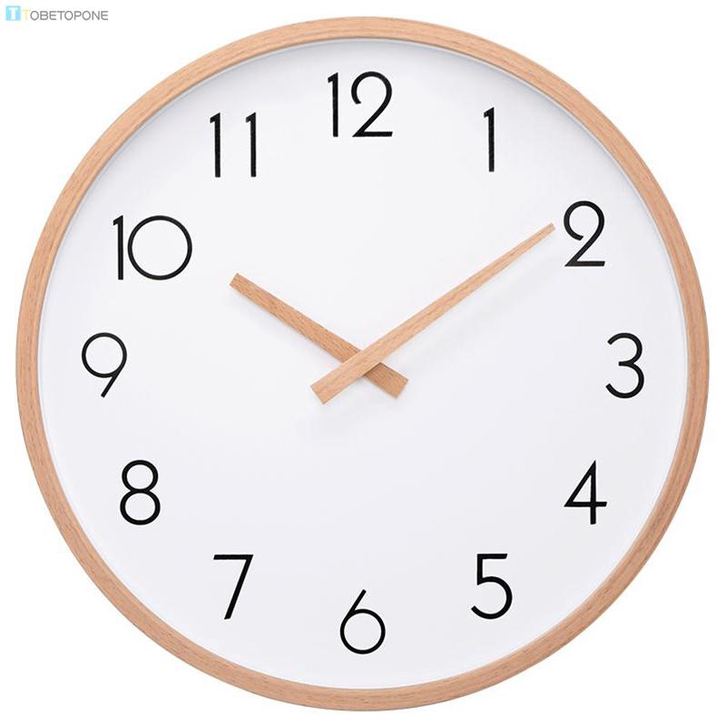 Wall Clock Bedroom Solid Wood Frame Round Non Ticking Decorative