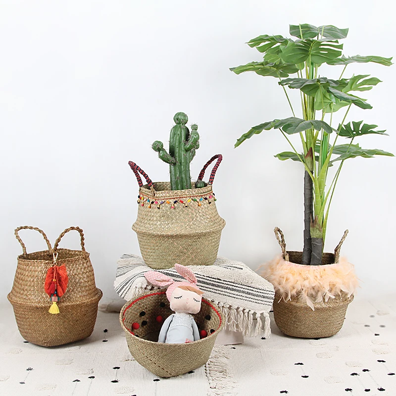 Wicker Basket Seagrass Laundry Basket Natural Rattan Flower Basket