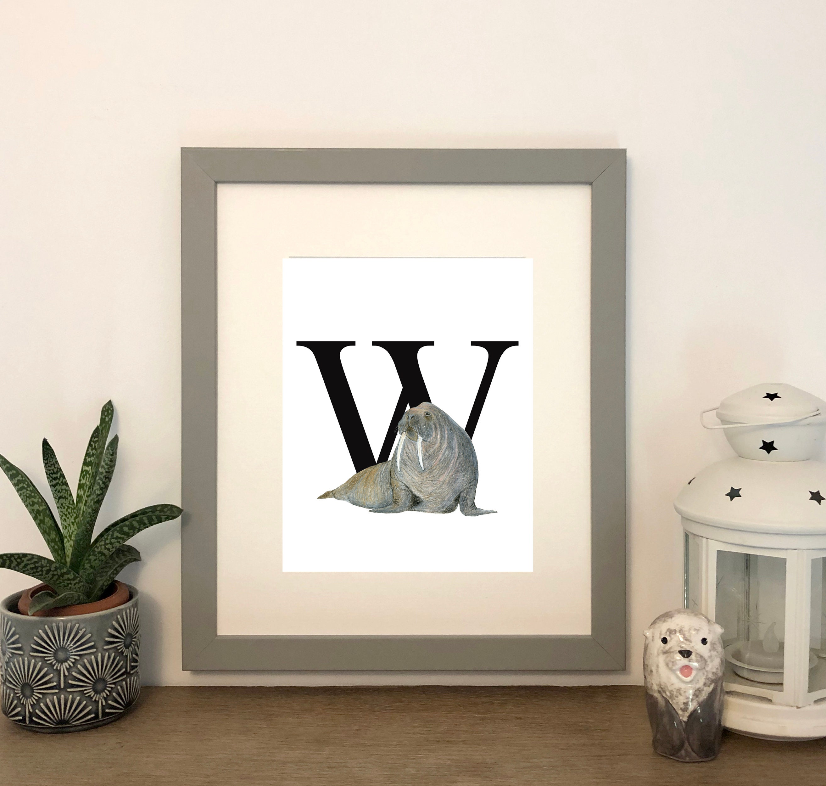 W For Walrus Animal Alphabet Giclee Print Nursery Wall Etsy