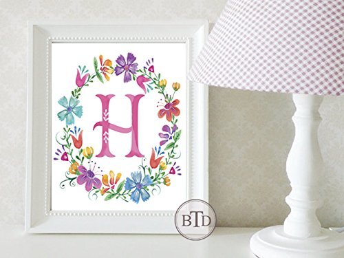 Nursery Prints Letter L Print Floral Nursery Print Personalized