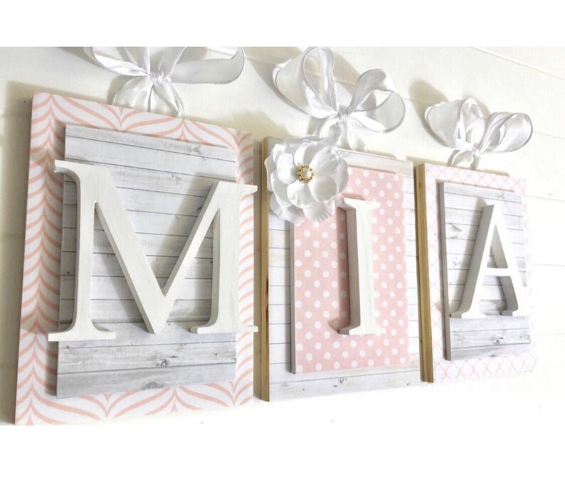 Nursery Wooden Wall Letters In Pink And Gray By Summerolivias