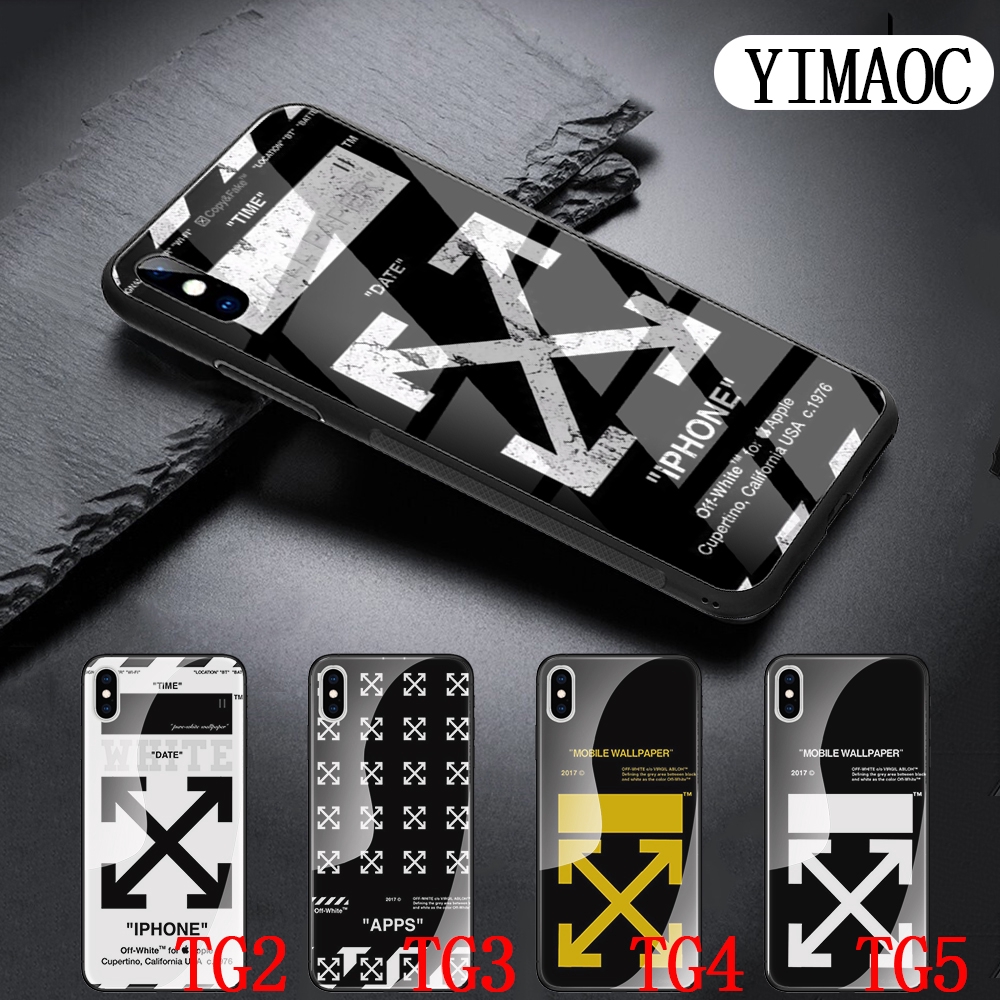 Case Bahan Kaca Warna Off White Untuk Iphone Xs Max Xr X 11 Pro 7