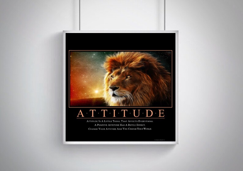 Attitude Lion Black Inspirational Quote Office Motivation Home Etsy