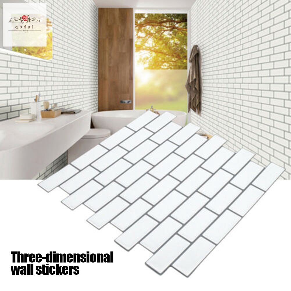 3d White Brick Tile Stickers Bathroom Kitchen Wall Decor Decals